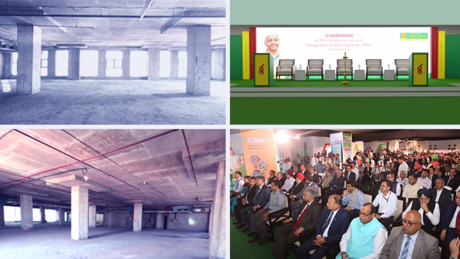 Team Qeni faced a unique challenge when tasked with transforming a raw space into a stunning event venue for the Punjab and Sind Bank Corporate Office inauguration. Every detail, from branding and flooring to air conditioning, had to be preciously planned and executed to ensure a flawless and elegant setting for the grand occasion. The inauguration was graced by the Finance Minister, Smt. Nirmala Sitharaman, adding to the protocol nature of the event, necessitating strict adherence to all Ministry protocols. Furthermore, seamless coordination with law enforcement and security agencies was paramount to guarantee thorough security measures for the event.